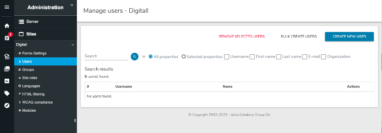 - Navigate to Administration>Site>Users and click Create new user.