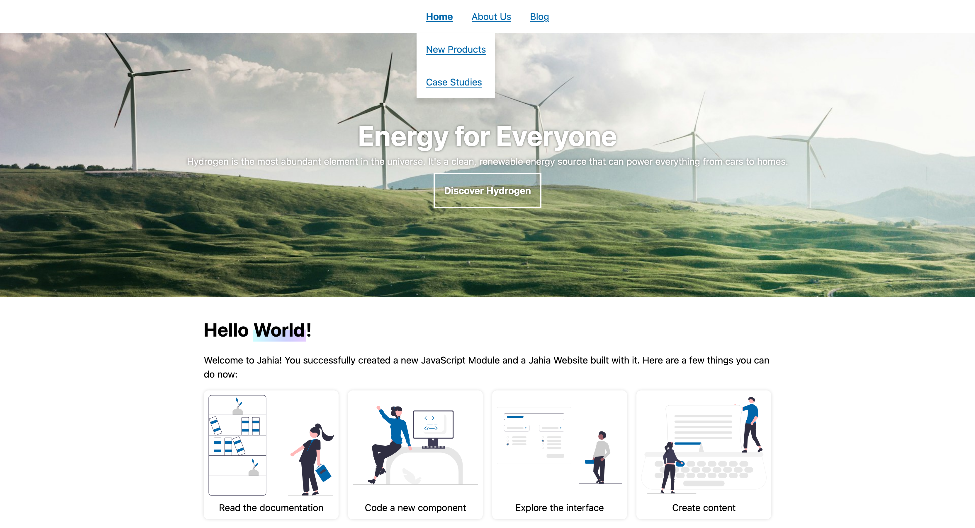 You've made it to the end of the getting started! We hope you enjoyed this tutorial and are excited to continue building your Jahia website with React and JavaScript.