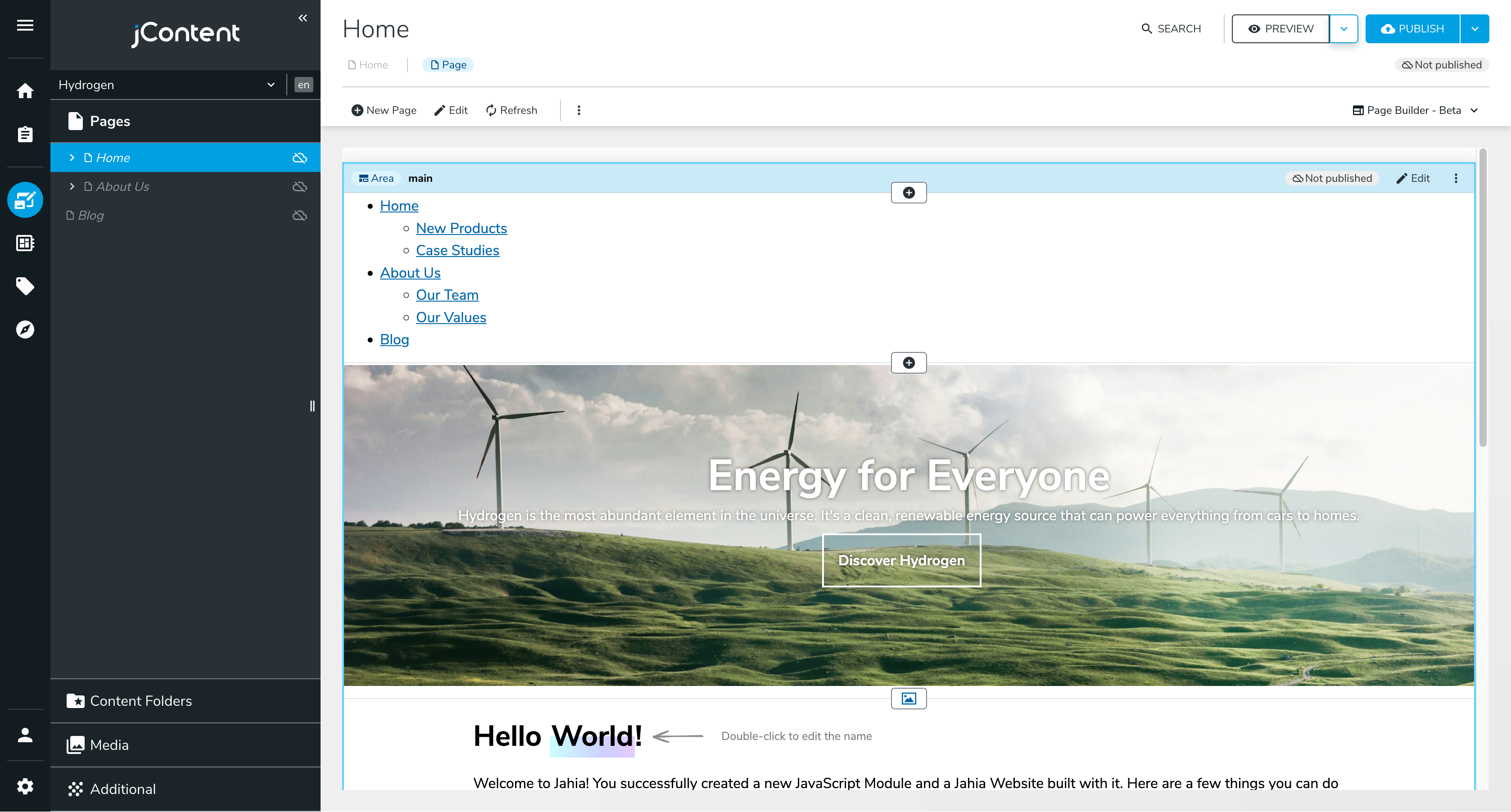 You can push your component to Jahia and see it in action by adding it to the Home page: