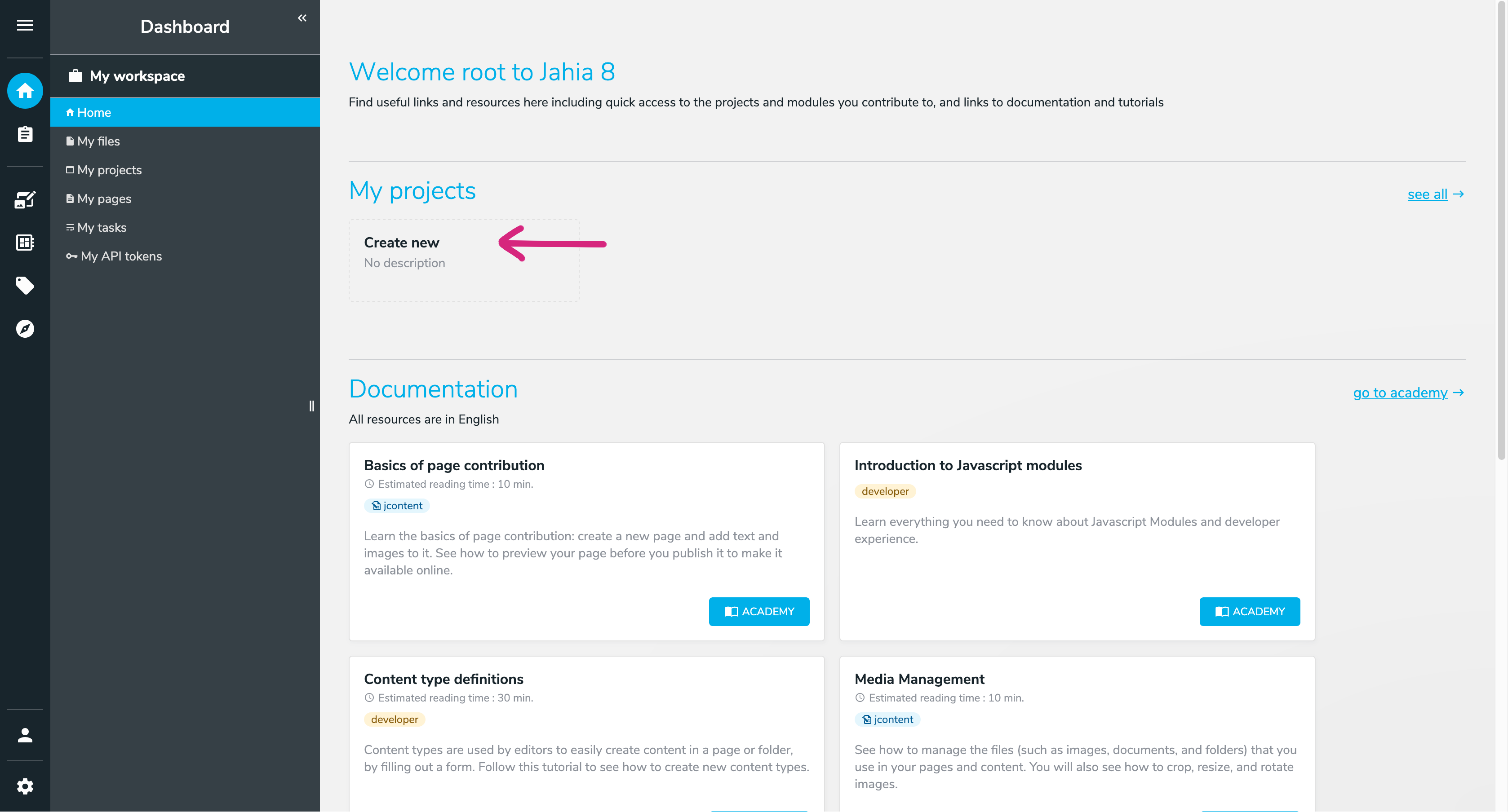 Click My projects > Create New > Create.